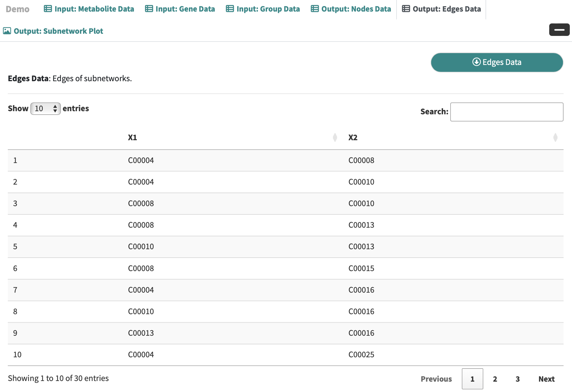 Edges Data: Edges of subnetworks.